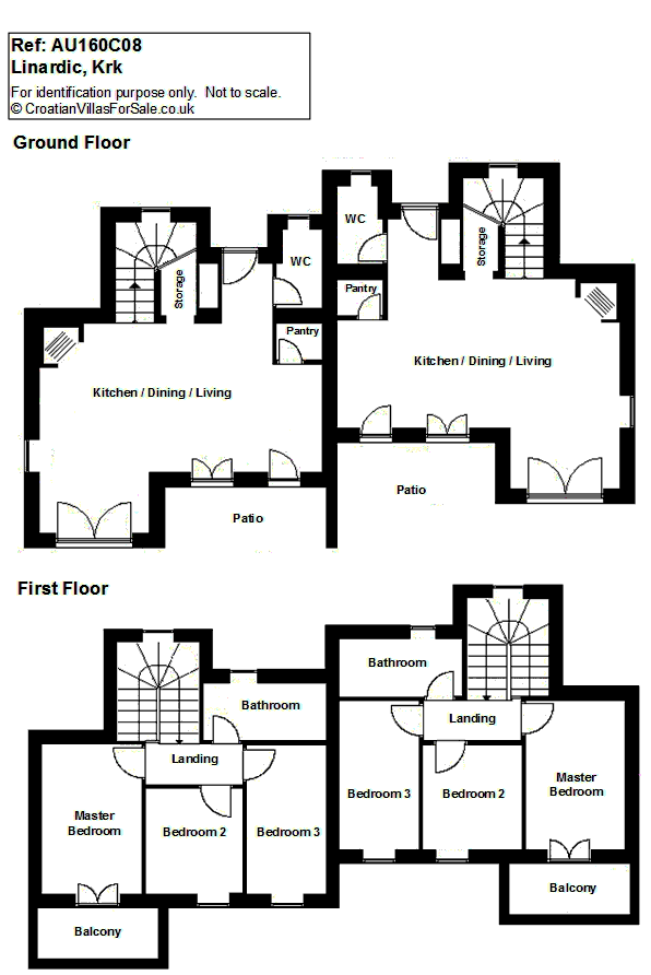 Doors to master bedroom, bedroom 2, bedroom 3 and bathroom.